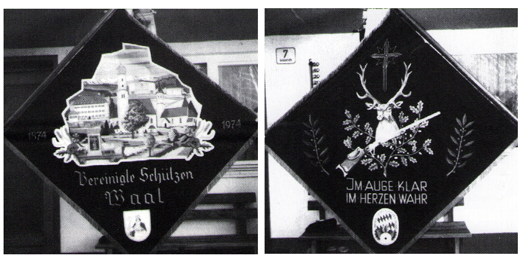 1974 | Der Schützenverein "Vereinigte Schützengesellschaft Waal" feiert das hundertjährige Bestehen. Im Rahmen dieses Jubiläums fand die Weihe der neuen Fahne statt, die nun auch als äußeres Zeichen für den Zusammenschluß der ursprünglich getrennten Vereine stand. Der Festzug fand mit 75 Vereinsgruppen und 13 Musikkapellen statt. | |