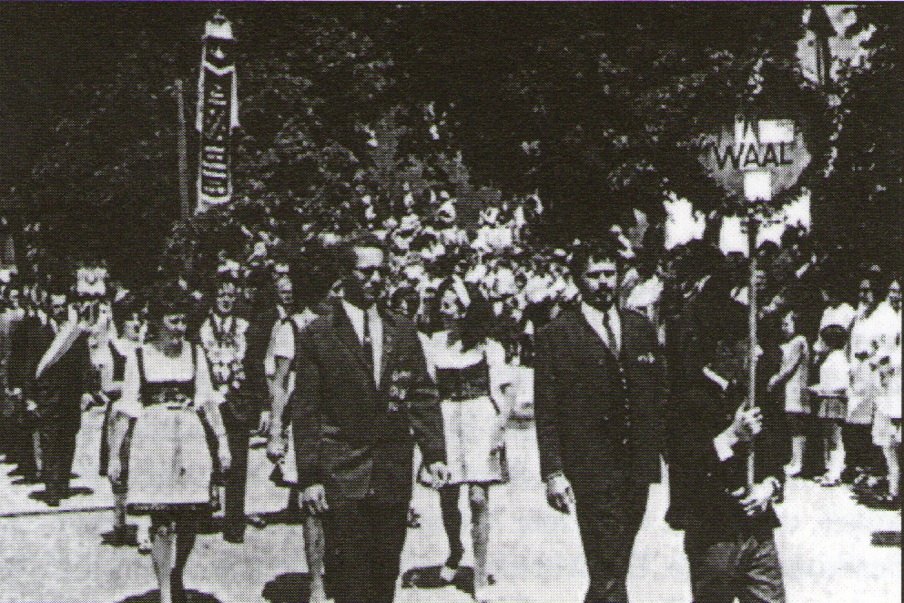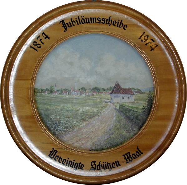 1974 | Der Schützenverein "Vereinigte Schützengesellschaft Waal" feiert das hundertjährige Bestehen. Im Rahmen dieses Jubiläums fand die Weihe der neuen Fahne statt, die nun auch als äußeres Zeichen für den Zusammenschluß der ursprünglich getrennten Vereine stand. Der Festzug fand mit 75 Vereinsgruppen und 13 Musikkapellen statt. | |